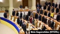 Ни государственный гимн Украины, прозвучавший в начале пленарной сессии грузинского парламента, ни украинские флаги на трибуне и ложах не сплотили грузинских депутатов от власти и оппозиции. Они солидарны с Украиной, но по-разному. Депутаты партии власти, в том числе и спикер парламента Шалва Папуашвили, свои выступления начали с воспоминаний об августовской войне 2008-го: